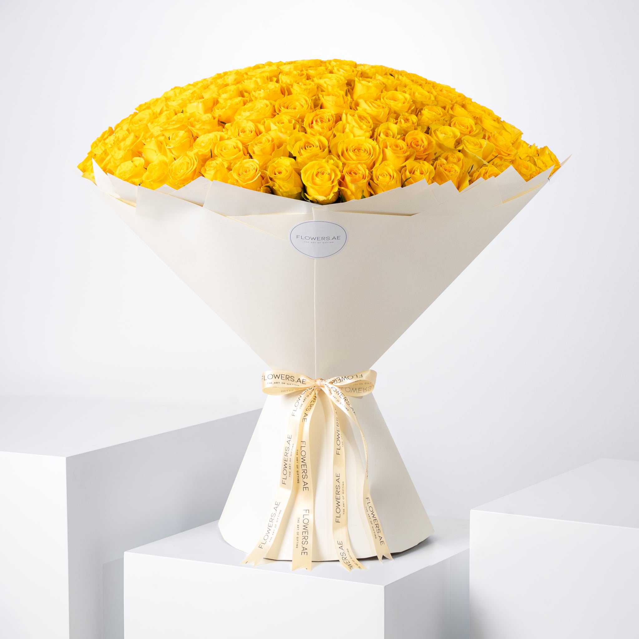 A marvelous hand-tied arrangement of 200 long-stemmed Yellow Roses for a loved one! Roses are the ultimate symbol of love.