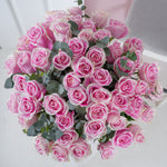 Impress with this exceptional vase featuring 50 of the finest large-headed Pink Roses. Individually selected by our skilled florists these are the finest pink roses.