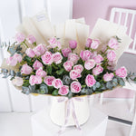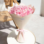 A marvellous hand-tied arrangement of 50 long-stemmed Pink Roses for a loved one! Roses are the ultimate symbol of love.