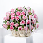 A stunning basket arrangement of 100 Pink Roses. The ultimate way to declare your love and leave them speechless.