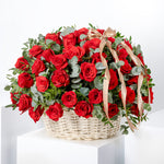 A stunning basket arrangement of 100 Red Roses. The ultimate way to declare your love and leave them speechless.