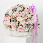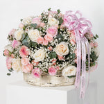 Introducing 'Adelle,' a breathtaking floral arrangement showcasing a graceful blend of Rose Ohara White and Rose Ohara Pink, accented by delicate Spray Rose Bombastic and Gypsophila. This elegant composition exudes sophistication, making it a perfect choice for any occasion. Thoughtfully designed to leave a lasting impression, Adelle is a timeless expression of beauty and charm.