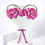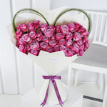 Celebrate success with grandeur. This hand-tied bouquet of 50 long-stemmed purple roses is a bold and regal gesture, perfect for commemorating milestones with elegance and admiration. Purple roses symbolize pride, achievement, and heartfelt sentiment, making this a stunning congratulatory gift.