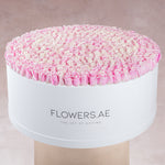 Indulge in luxury with our grandest flower arrangement yet - 500 exquisite Pink Roses sourced from Holland, arranged in our signature XXXL White Hatbox. Perfect for those special occasions where you want to make an unforgettable impression.