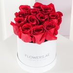 The perfect gift for any occasion, this beautiful Petite Red Roses Hatbox is filled with premium red roses that are sure to brighten up any room. Hand-crafted with a sturdy and stylish design, the gift box is adorned with a classic black ribbon and is certain to be a hit with anyone who receives it. These high-quality roses are the perfect way to show your special someone how much you care.