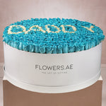 Celebrate the joy of fatherhood with our stunning "DAD" floral arrangement, crafted from exquisite blue roses. This unique gift honors the strength, love, and devotion of a new dad as he welcomes his little one into the world. The striking blue hue symbolizes tranquility and unwavering support, making it a perfect way to show appreciation for this special milestone in his life.