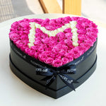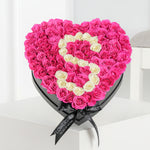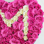 Our stunning signature letter heart-shaped box is one of our most requested arrangements. Our classic heart-shaped box comes in pink spray Rose background with white lettering. If you would like to choose a letter and colour then please just let us know in the special requests section on the cart page.