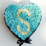 Our stunning signature letter heart-shaped box is one of our most requested arrangements. Our classic heart shaped box comes in Tiffany rose background with White lettering. If you would like to choose a letter and colour then please just let us know in the special requests section on the cart page.