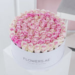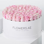 Impress your loved one with an XXL hatbox of pink roses, a luxurious and unforgettable gift that symbolizes love and affection.