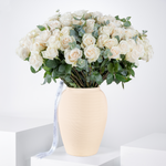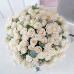 Impress with this exceptional vase featuring 100 of the finest large-headed White Roses. Individually selected by our skilled florists and arranged with care.