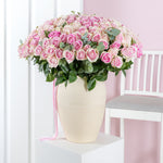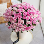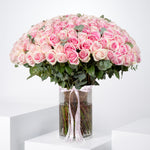 Impress with this exceptional vase featuring 200 of the finest large-headed Pink Roses. Individually selected by our skilled florists these are the finest pink roses.