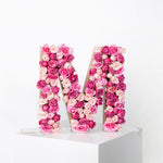 Our ready to order sumptuous 40cm standing letter of your choice, A to Z wooden arrangement combines purple, pink, and peach roses.