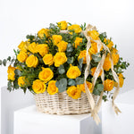 A stunning basket arrangement of 100 Yellow Roses. The ultimate way to declare your love and leave them speechless.