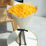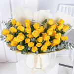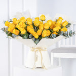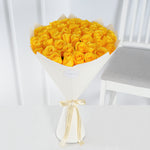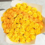 A stunning hand-tied bouquet of 50 yellow roses, symbolizing joy and friendship. Bright and elegant, it's the perfect gift to make any occasion unforgettable.