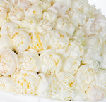 A vision of elegance, our hand-tied bouquet of 100 white peonies captures the beauty of simplicity. Each bloom unfolds in soft, cloud-like layers perfect for serene spaces, heartfelt moments, or timeless gestures.