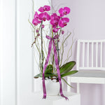 The stylish purple Phalaenopsis Orchid is a contemporary favorite, admired for its elegance and abundant exquisite blooms.