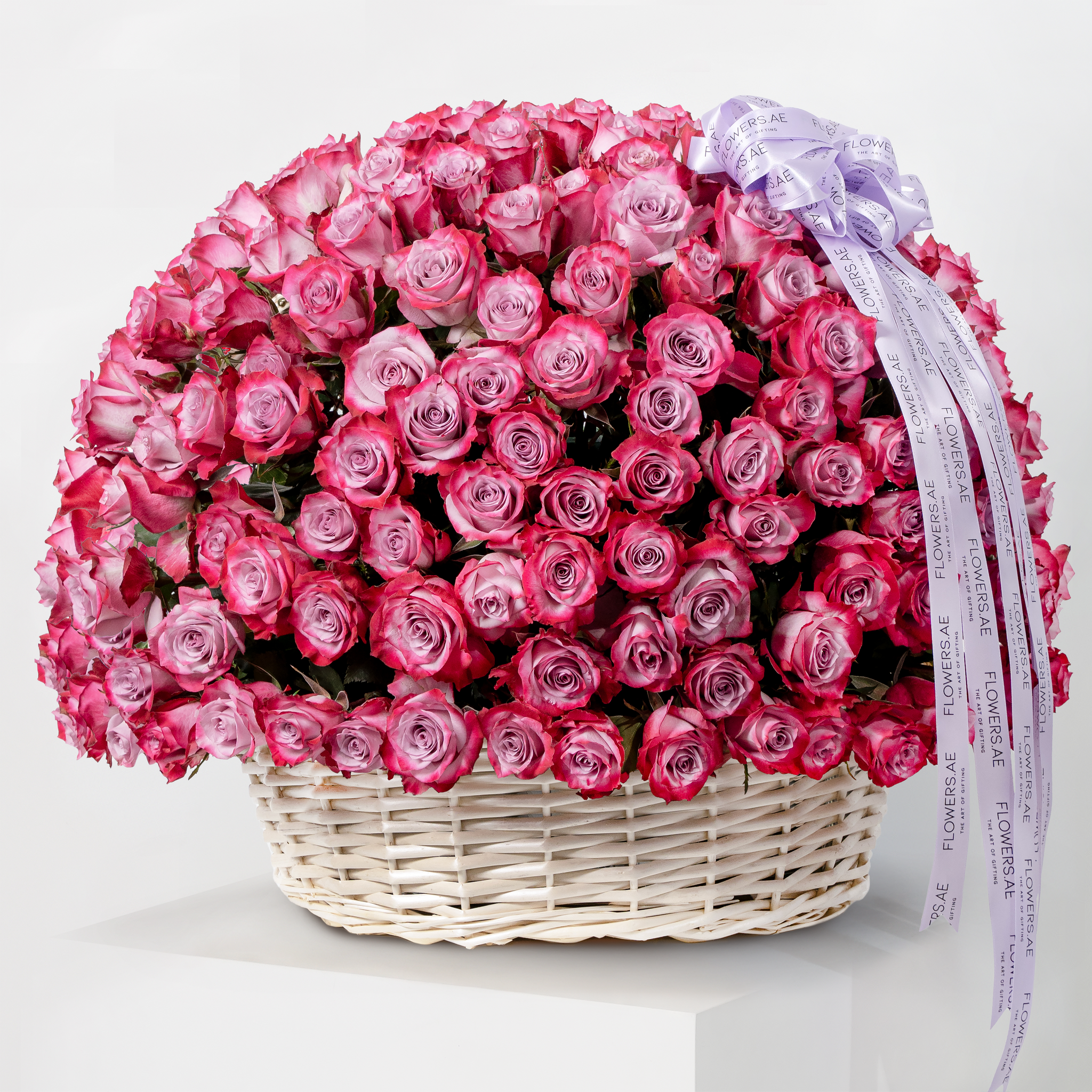 A stunning basket arrangement of 365 Purple Roses. The ultimate way to declare your love and leave them speechless.