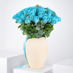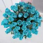 Featuring 50 large-headed Blue Roses with greeneries, hand created by our expert team and presented in gift packaging.