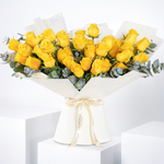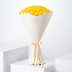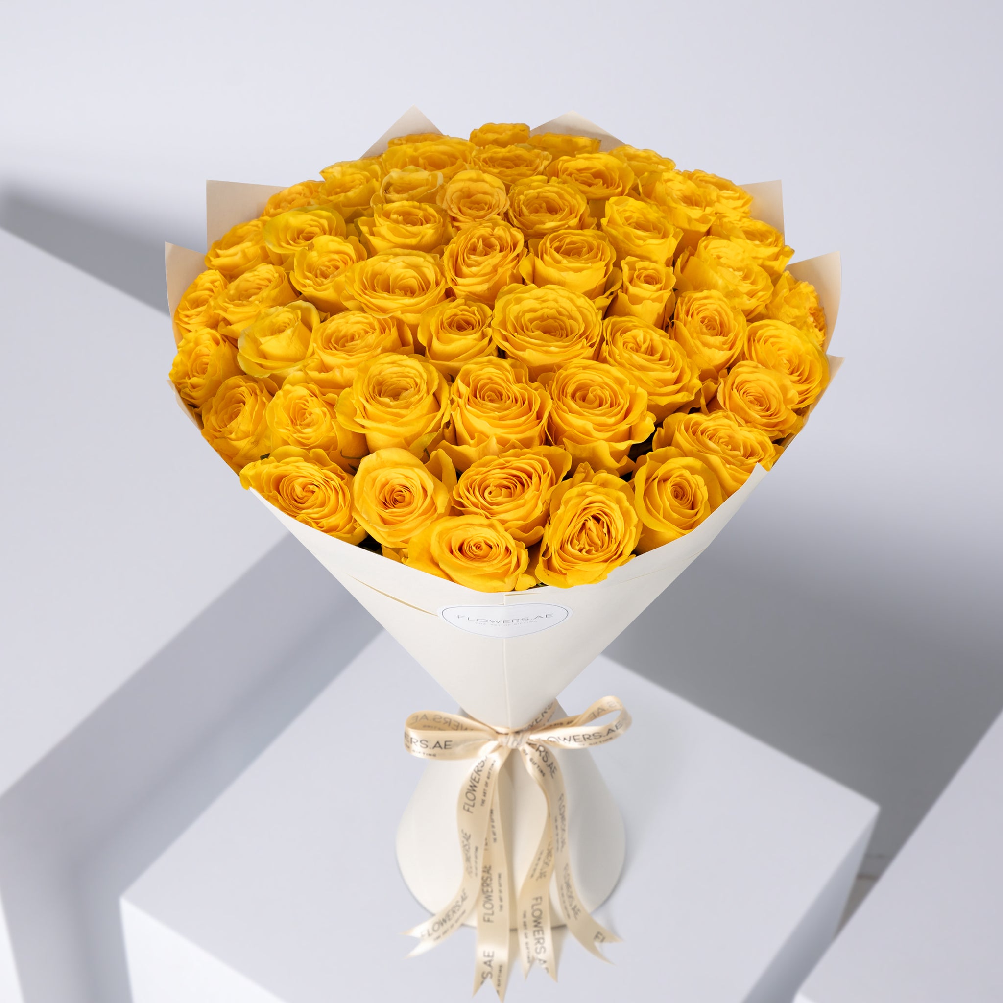 A stunning hand-tied bouquet of 50 yellow roses, symbolizing joy and friendship. Bright and elegant, it's the perfect gift to make any occasion unforgettable.