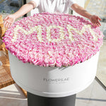 Celebrate a new mom with our "MOM" floral arrangement, crafted from delicate pink roses. A heartfelt gift to honor her love, strength, and the joy of motherhood.