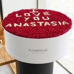 Express your love with our grand arrangement of red spray roses spelling out "I love you Anastasia" in white roses. Customizable to any name or message, it's the perfect declaration of love.