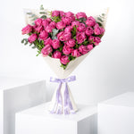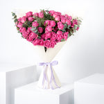 Delight in the whimsical charm of our Misty Bubbles flower arrangement. This enchanting bouquet showcases the playful Misty Bubbles spray roses, known for their rich pink hues and abundant petals. Perfectly arranged to highlight their natural beauty, these blooms bring a touch of elegance and joy to any setting. Whether celebrating a special occasion or brightening up your home, the Misty Bubbles arrangement is a delightful expression of floral artistry.
